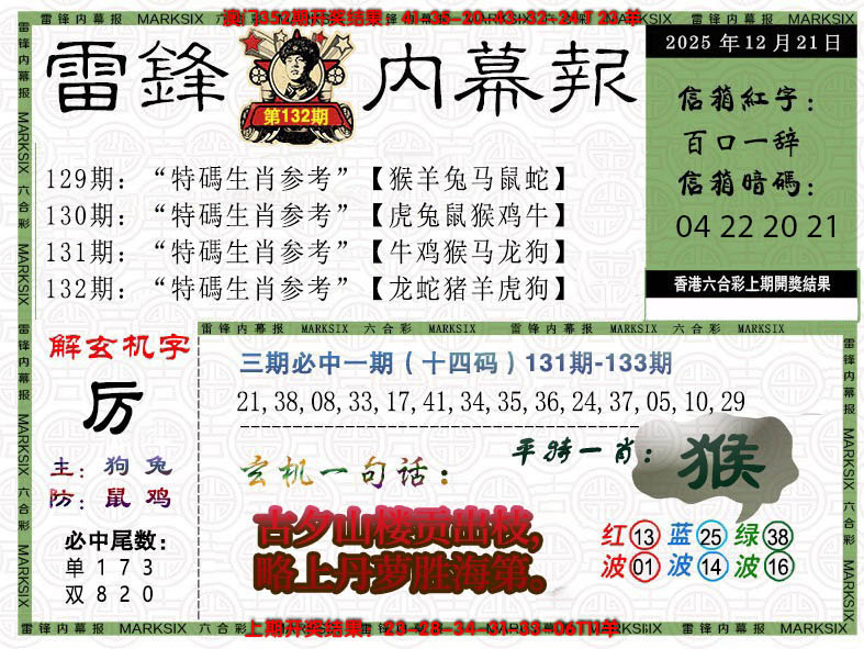 132期【5门1门】中中中!开猴46准 |